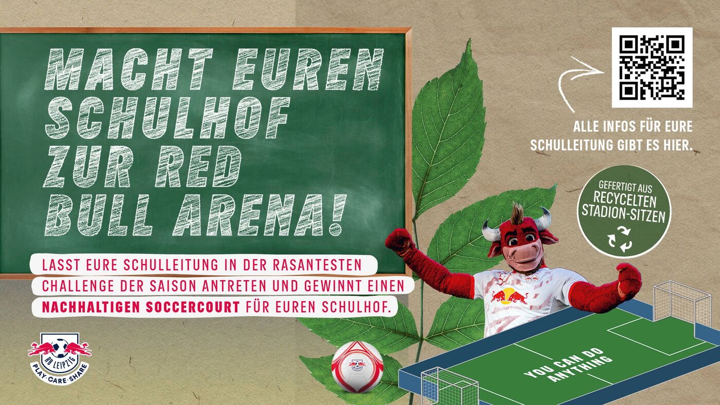 Eine ganz besondere Aktion gibt es derzeit von RB Leipzig: Der Bundesligist verschenkt seine alten, blauen Stadionsitze. Daraus würden Banden für einen nachhaltigen Soccercourt entstehen. Um den Court können sich ab sofort bis Ende November alle Leipziger Schulen bewerben. Die fünf überzeugendsten Bewerbungen müssen sich dann in einer Challenge beweisen: Stadionsprecher Tim Thoelke testet die Schulleitungen vor der versammelten Schülerschaft auf ihr RB Leipzig-Wissen und ihre Skills am Ball. Die beste Schulleitung gewinnt für seine Schule dann den Soccercourt.