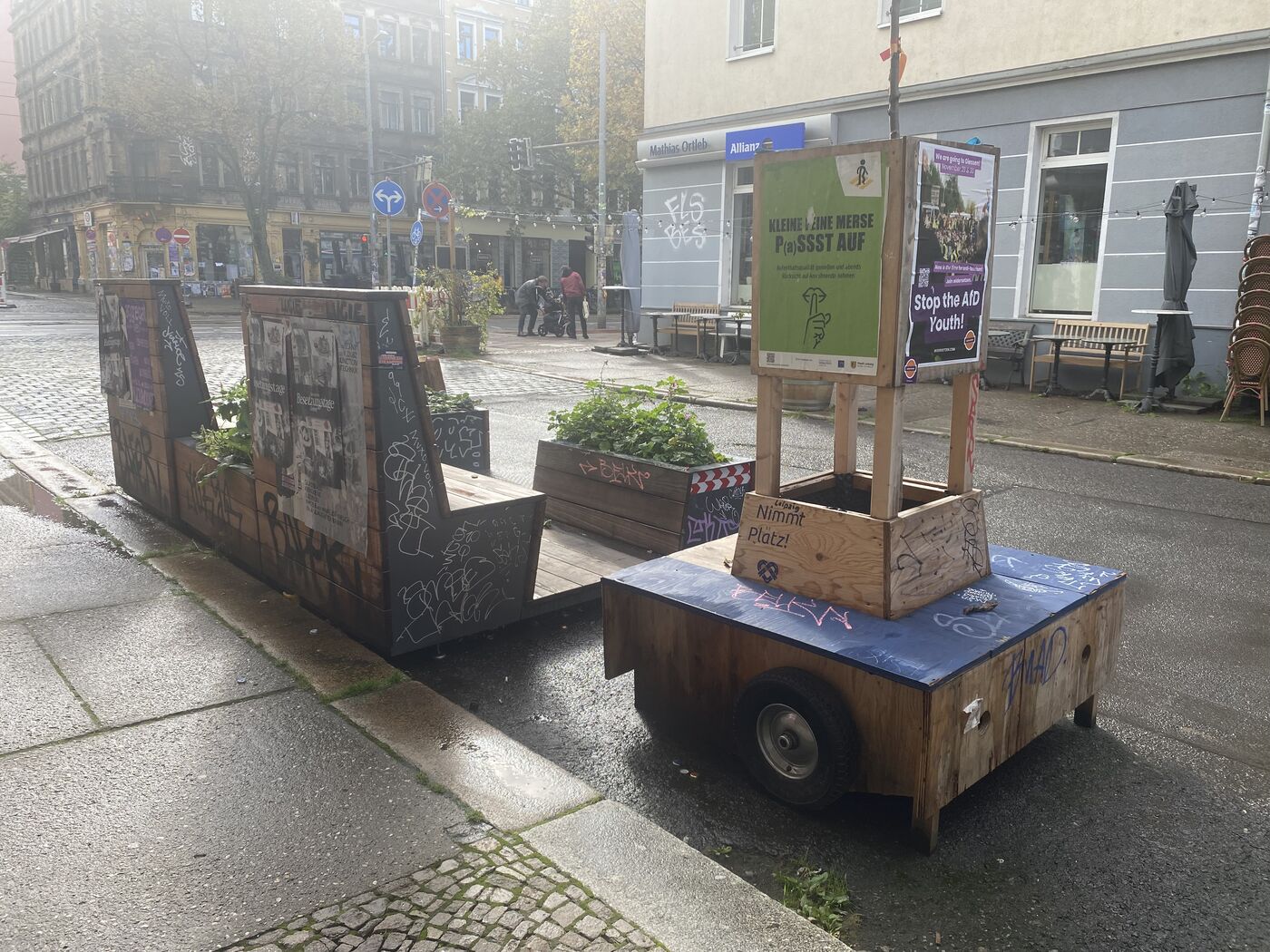 - Hier sieht das ganze schon deutlich besser aus - auch diese Sitzgruppe befindet sich auf der Merseburger Straße ...