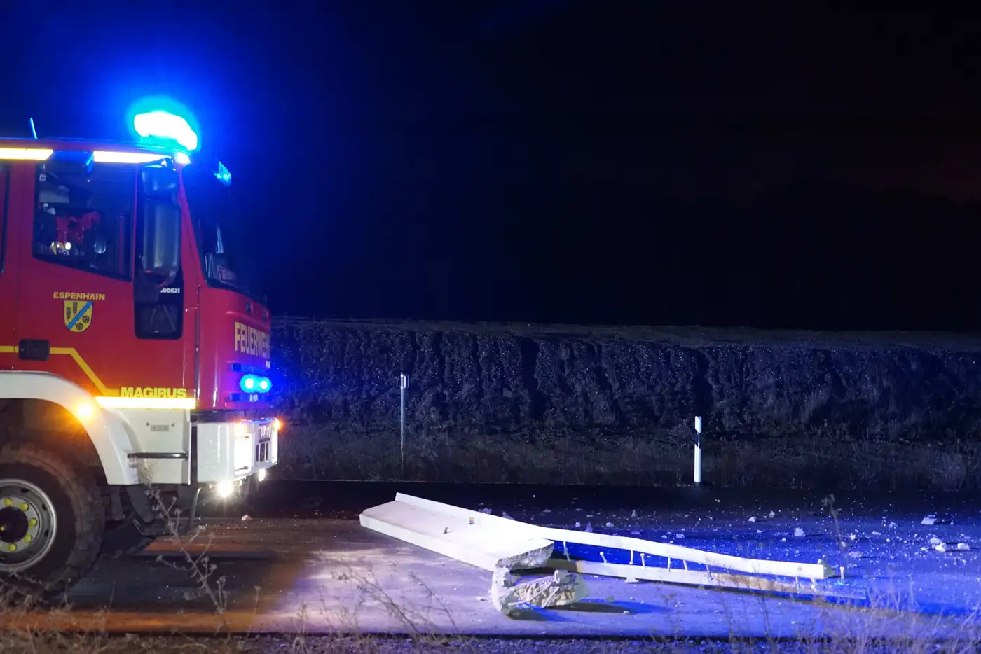 - Der Transporter krachte gegen einen Betonpfeiler und mehrere Baustellenabsperrungen.