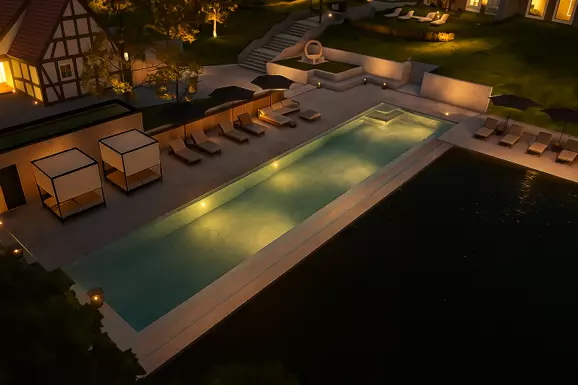 Vorfreude ist eine der schönsten Freuden – ab Sommer 2026 dürfen Sie sich auf etwas Besonderes freuen: Im Hotelpark entsteht der größte Natursteinpool in Deutschland mit einer Länge von 25 Meter. Der Pool wird ganzjährig nutzbar sein, angenehm beheizt und eingebettet in die Ruhe des Parks – perfekt, um erfrischende Bahnen zu ziehen oder einfach im warmen Wasser zu entspannen.
