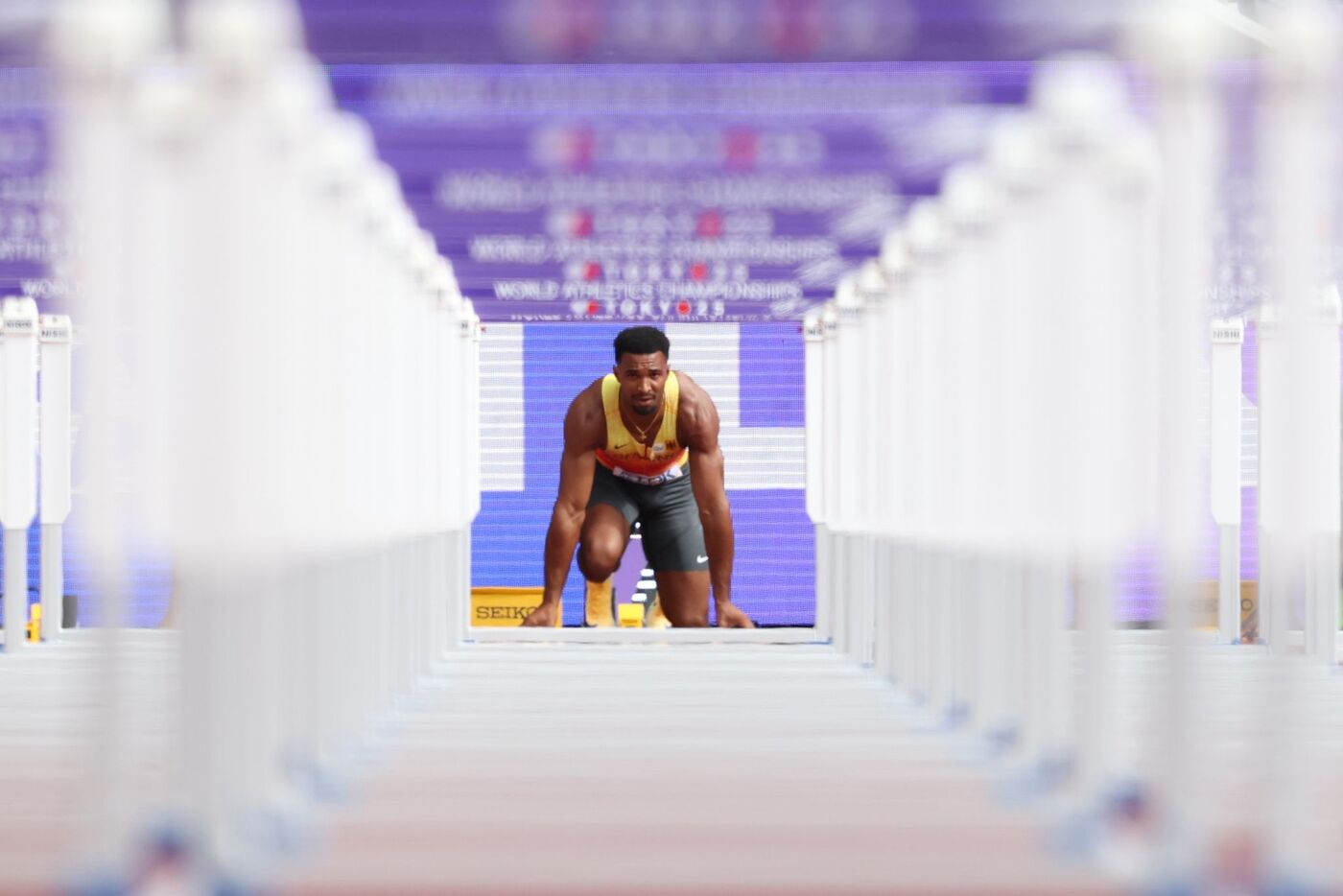 Traurig trottete zuvor der norwegische Topfavorit Sander Skotheim von der Bahn. Der Weltjahresbeste und Hallen-Weltmeister blieb über 110 Meter Hürden an einer Hürde hängen, stolperte fast und stieß die folgende Hürde per Hand um. Das hatte die Disqualifikation zur Folge.