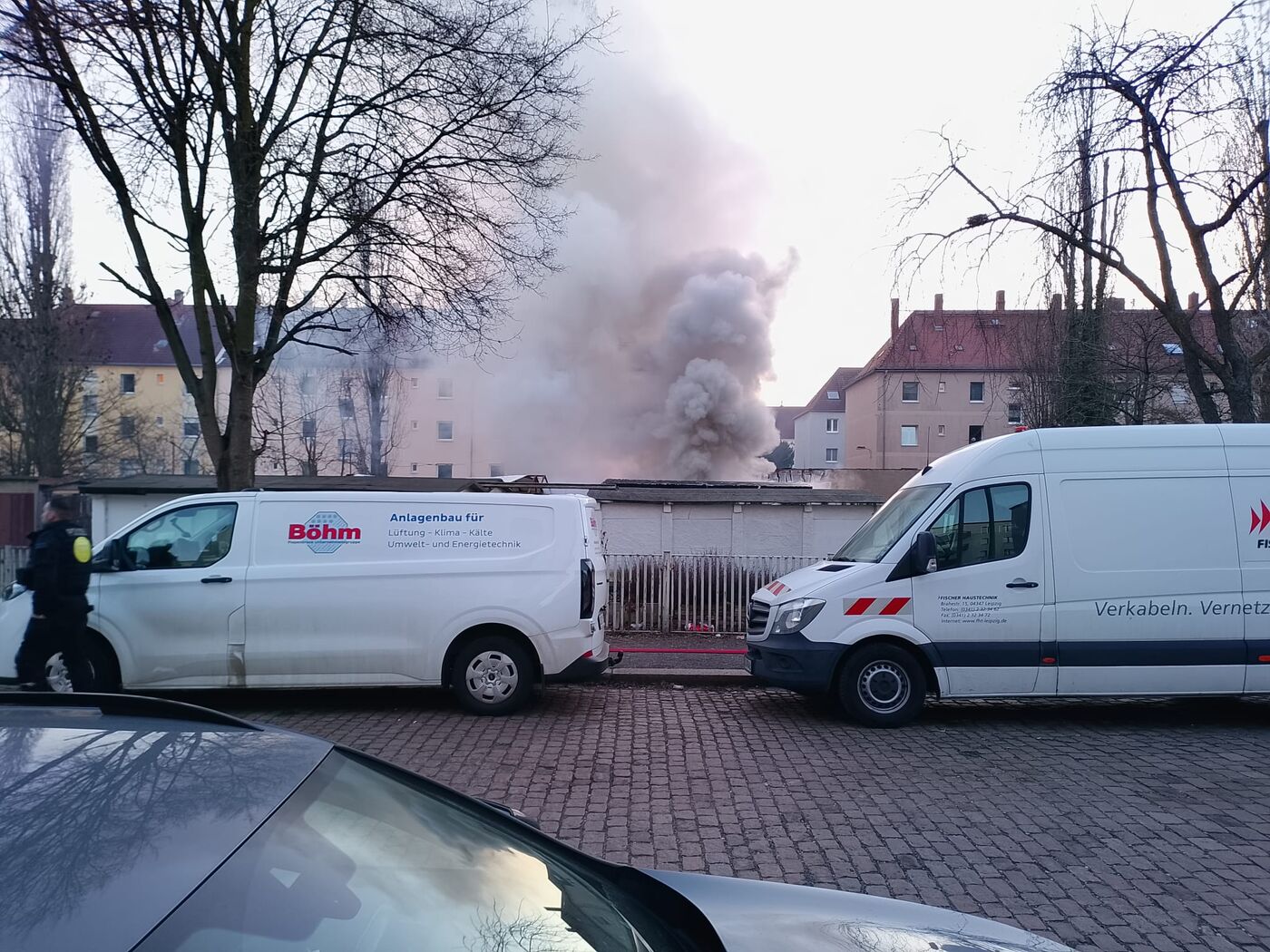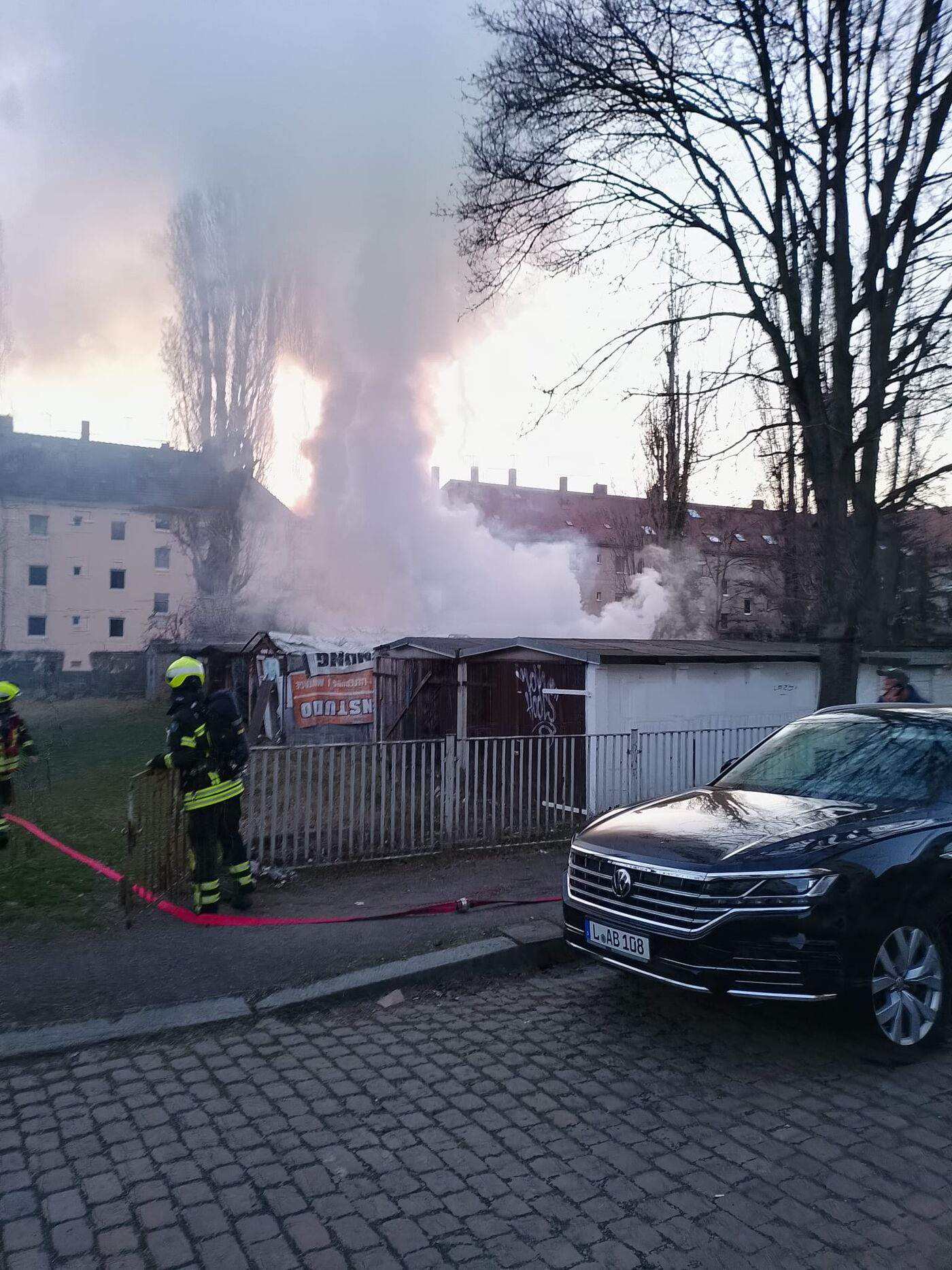 Neulindenau: Garagenhof in Flammen