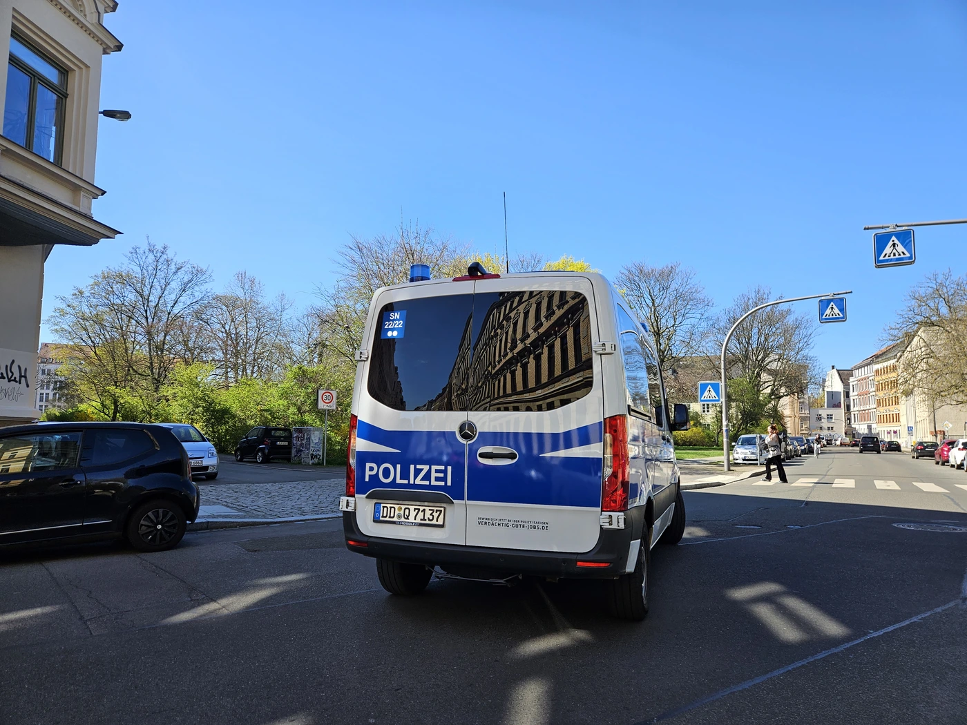 - Das Polizeiauto markiert den Ort des Überfalls auf der Koehlerstraße.