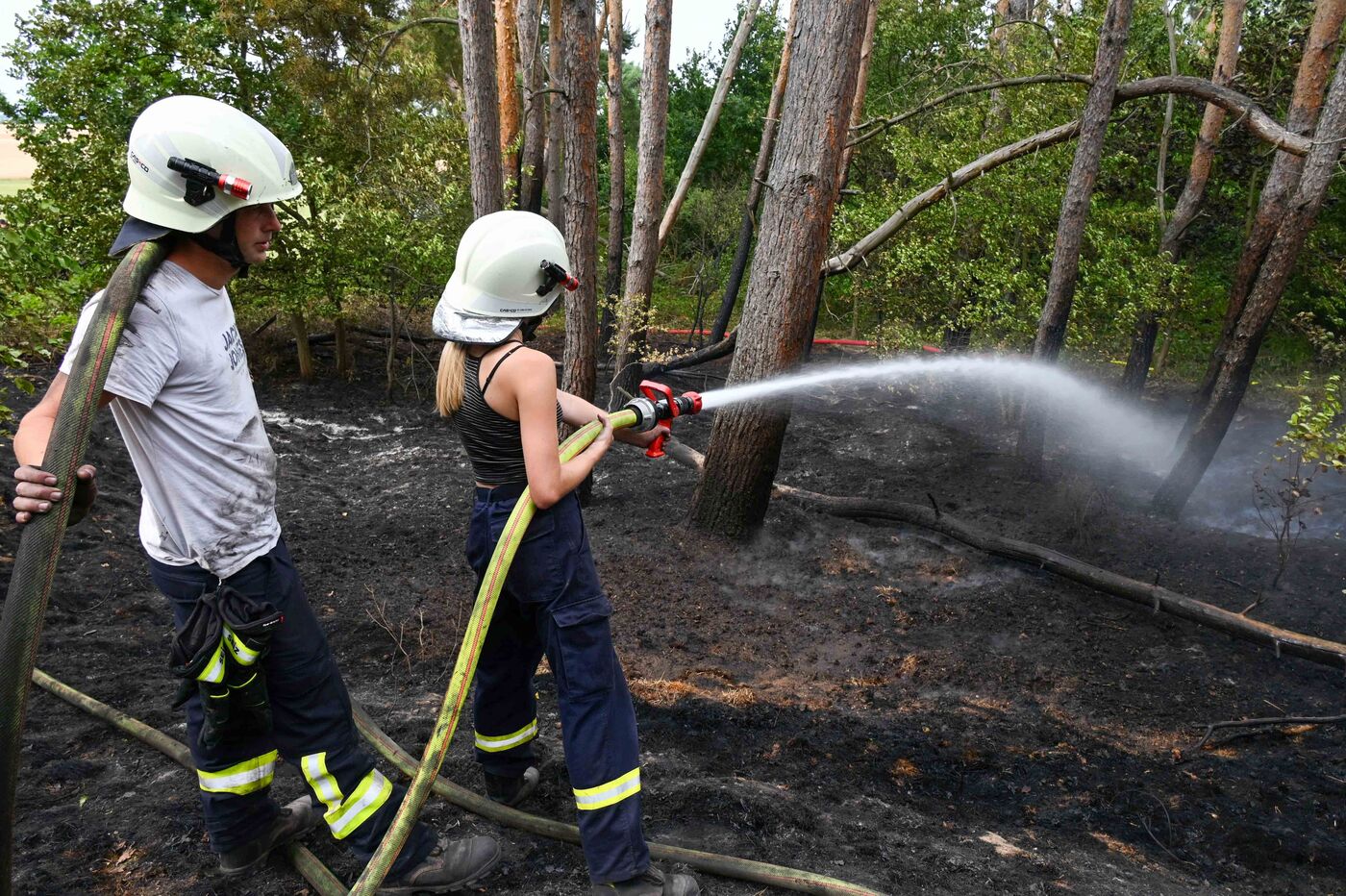 - Viele Feuerwehrleute löschten wegen der großen Hitze später mit leichterer Bekleidung.