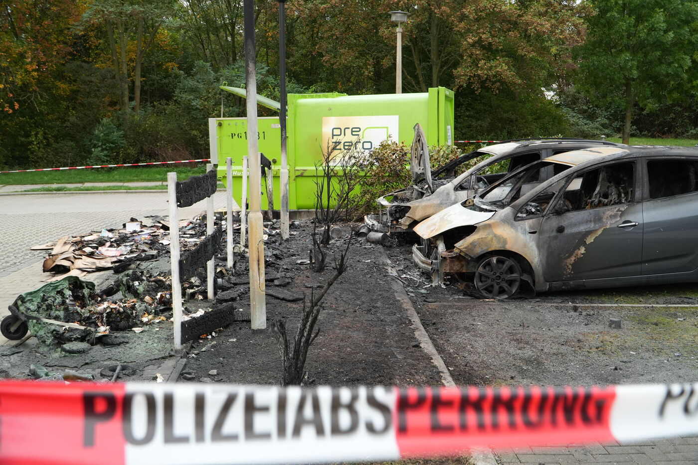 - Auf dem Parkplatz fackelten mehrere Autos ab.