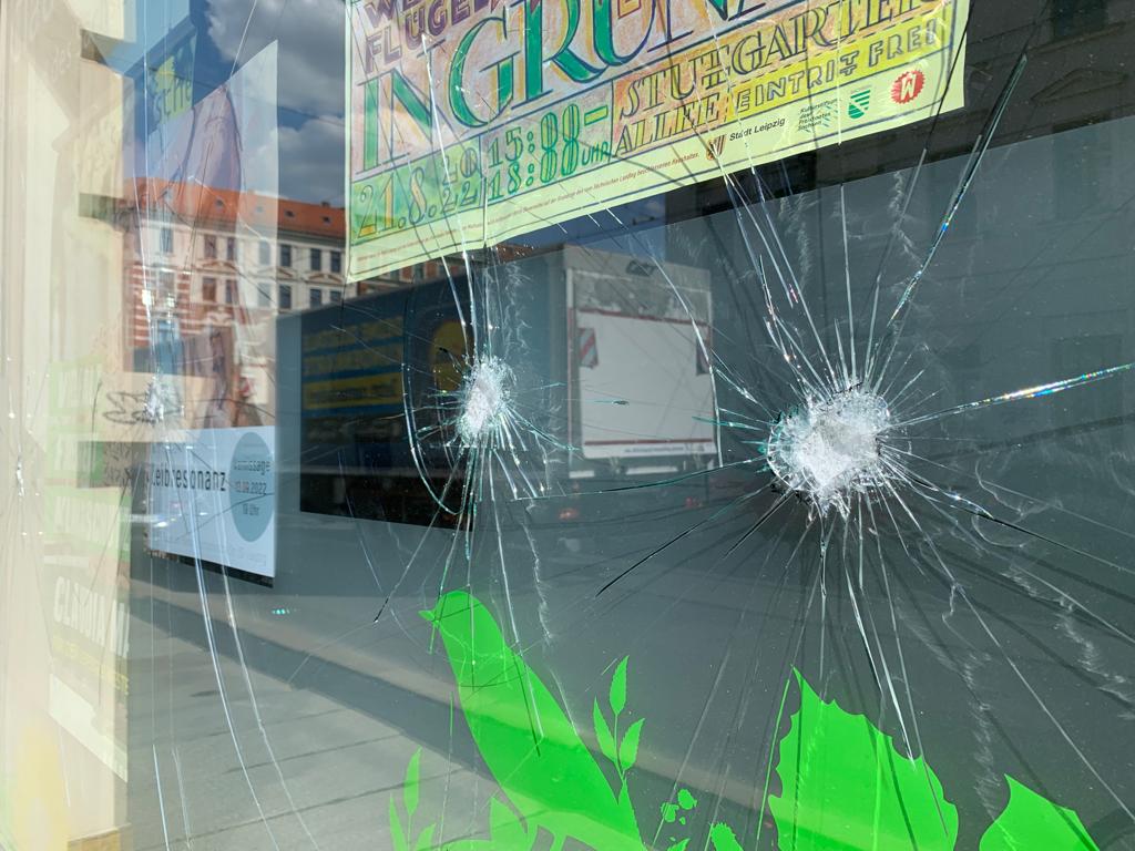 Im Leipziger Stadtteil Plagwitz ist in der Nacht zu Mittwoch ein Parteibüro attackiert worden. Zwei Fensterscheiben und die gläserne Eingangstür von Grünen-Abgeordneten Claudia Maicher sind beschädigt worden, hat unser Reporter vor Ort gesehen.