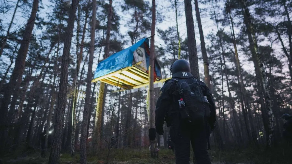 Nach gut eineinhalb Jahren Besetzung wird aktuell das Protestcamp im Waldstück Heidebogen nördlich von Dresden schrittweise geräumt.