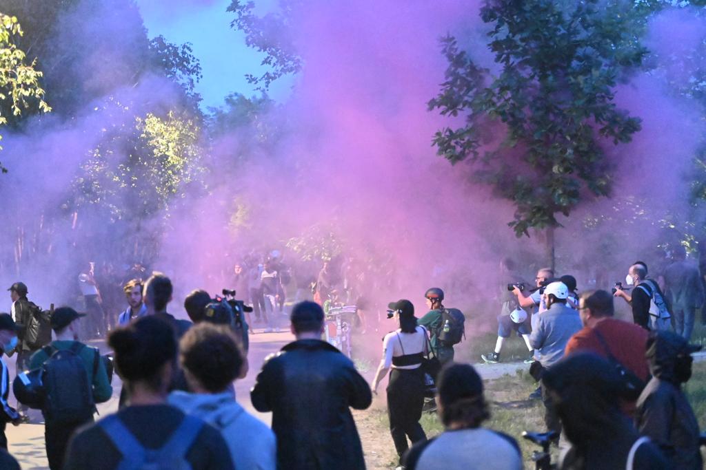 Am Abend räumte die Polizei in Leipzig eine Barrikade, die Demonstranten auf einer Kreuzung mit Bauabsperrungen und dem Inhalt von Glascontainern errichtet hatten. Dabei kam ein Räumpanzer zum Einsatz. Auch ein Wasserwerfer stand bereit. Die Polizei bezifferte die Zahl der Protestteilnehmer auf rund 800. Im Park, wo die Versammlung stattfand, hatte sich die Situation dagegen am späten Abend etwas beruhigt. Einsatzkräfte waren in der Nacht noch im Stadtgebiet unterwegs.