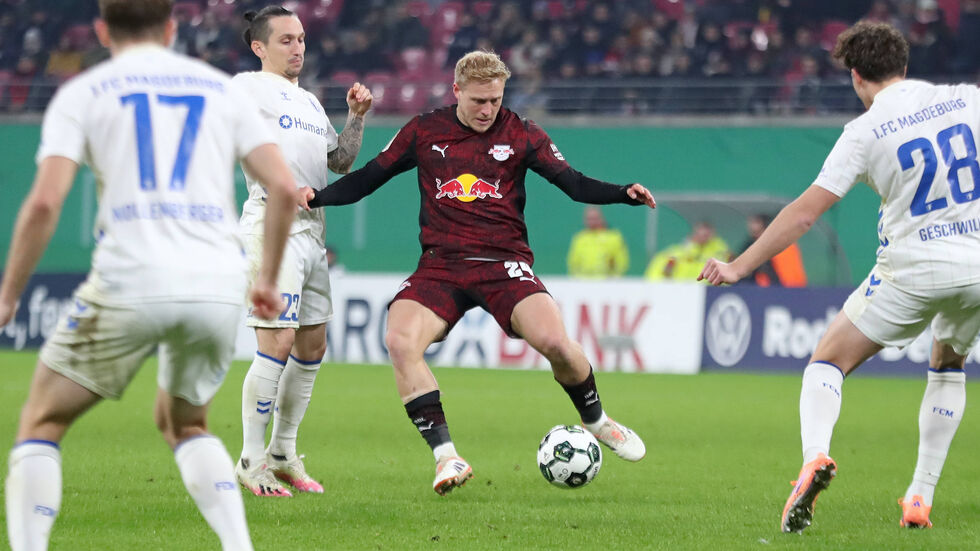 Sportlich begann der Abend mit einem Rückschlag für Leipzig: Magdeburg ging durch einen Foulelfmeter von Silas Gnaka (11.) in Führung. RB antwortete allerdings schnell. Antonio Nusa (19.) traf per Distanzschuss zum Ausgleich, Christoph Baumgartner (30.) drehte die Partie noch vor der Pause. Nach dem Wechsel erhöhte der Österreicher zum 3:1 (54.).