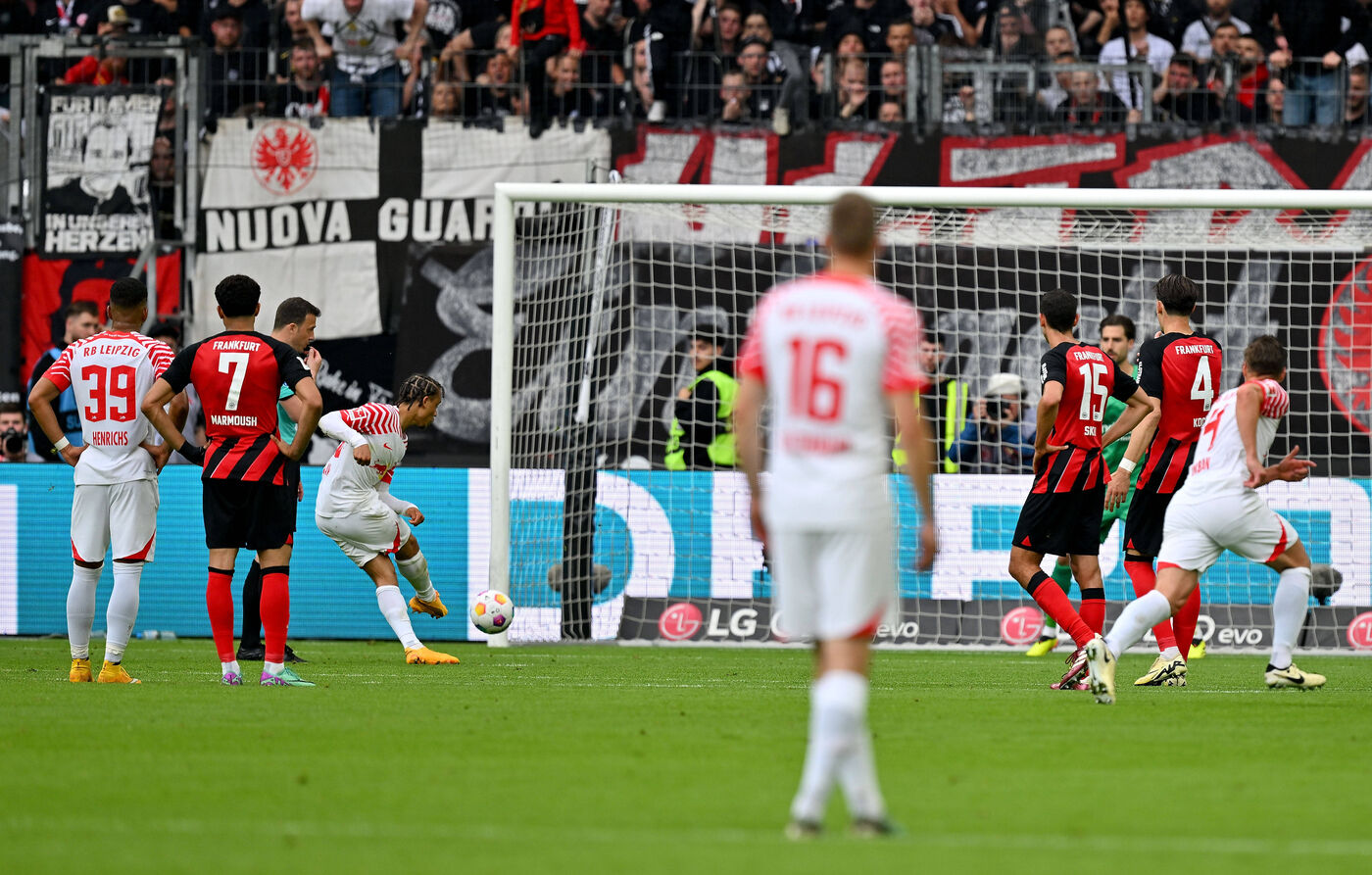 Direkt nach Wiederanpfiff landete Leipzig den zweiten Wirkungstreffer. Die Frankfurter Abwehr ließ Sesko im Zentrum gewähren und der RB-Stürmer hämmerte den Ball aus rund 20 Metern unhaltbar für Eintracht-Keeper Kevin Trapp unter die Latte.