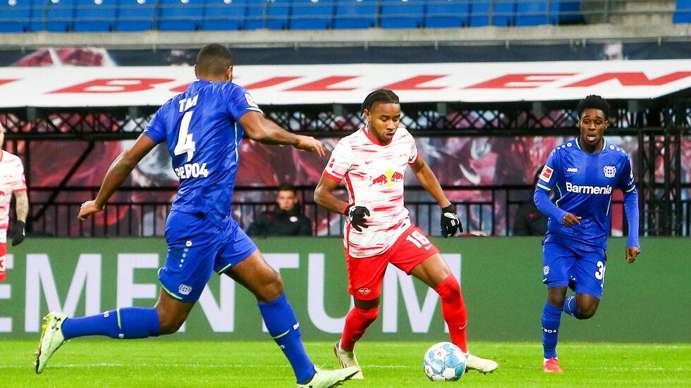 Geister-Tristesse nach der Gala in der Champions League: Vizemeister RB Leipzig bekommt einfach keine Konstanz in seine Leistungen und hat in der Fußball-Bundesliga gegen Bayer Leverkusen verdient mit 1:3 (0:2) verloren. Vier Tage nach dem 5:0 beim FC Brügge war das erneut von Co-Trainer Achim Beierlorzer betreute Team nicht wiederzuerkennen und lag schon zur Halbzeit durch Tore des Bayer-Duos Florian Wirtz (21. Minute) und Moussa Diaby (34.) zurück. André Silva (62.) verkürzte zwar, doch Jeremie Frimpong (64.) sorgte kurz darauf für die Entscheidung.