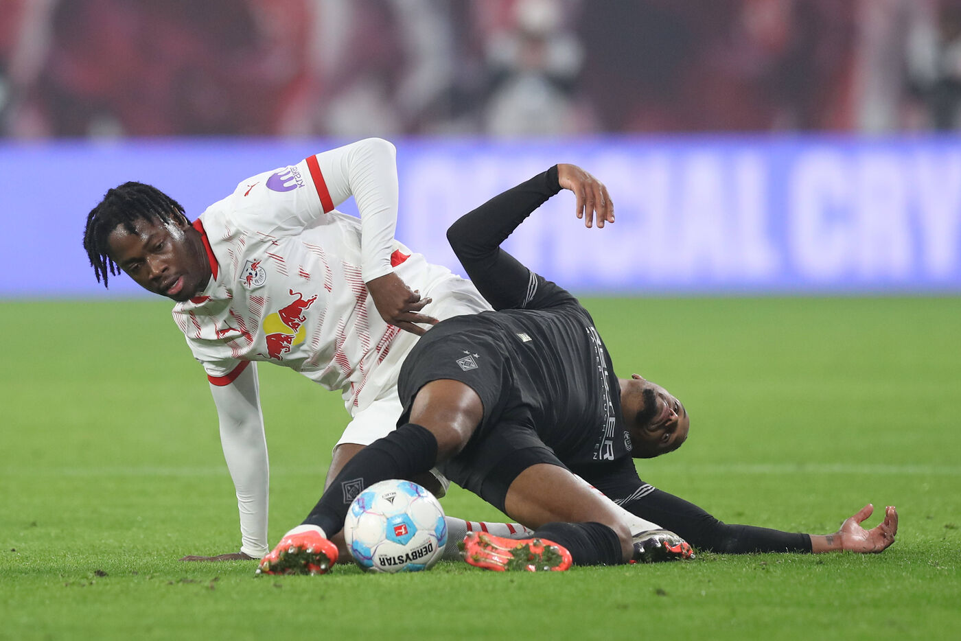 Ziemlich optimistisch ging Robin Hack mit einem Versuch aus 40 Metern an die Sache ran, RB-Keeper Peter Gulacsi rettete zur Ecke (9.). Das Duell Gulacsi vs. Gladbach war eröffnet. Rocco Reitz kam nach einer Ecke völlig frei zum Kopfball, Gulacsi parierte erneut. Nach einer guten Viertelstunde verbuchte auch Leipzig den ersten Abschluss, der angedachte Schlenzer von Christoph Baumgartner rutschte ihm jedoch zu sehr über den Fuß. Fünf Minuten später ging das Schienen-Experiment mit Nusa erstmals auf. Der Norweger dribbelte sich über den Flügel durch, doch die Flanke war etwas zu hoch.