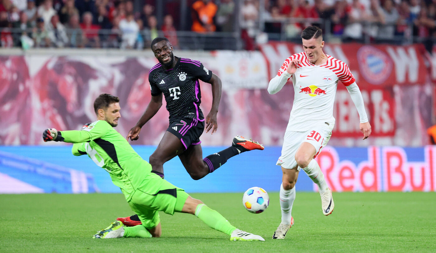Auf dem Platz zeigten die Bayern zunächst, dass sie die 0:3-Pleite aus dem Supercup Ende August gegen Leipzig wieder wettmachen wollen. Schon nach drei Minuten tauchte Jamal Musiala nach sehenswertem Schnittstellen-Pass von Harry Kane allein vor dem Leipziger Tor auf. Doch Keeper Janis Blaswich parierte mit einem glänzenden Reflex.