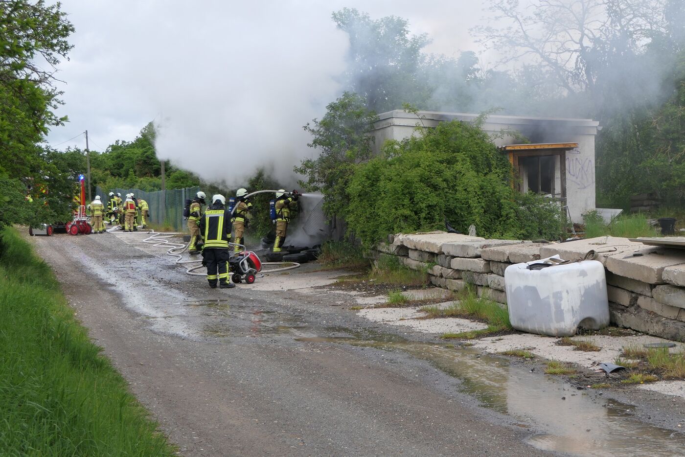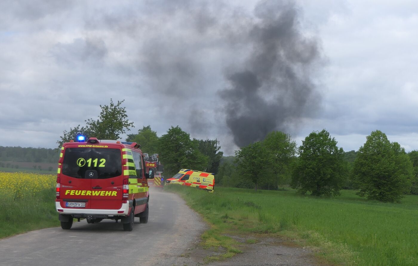 Großeinsatz für die Feuerwehren bei Grimma: An der Kleinbardauer Straße zwischen Großbothen und Leisenau brannte am Sonntag ein Schuppen eines alten Futtersilos. Die darin gelagerten Reifen sorgten für eine starke Rauchentwicklung. Etwa 50 Feuerwehrleute rückten zum Löschen unter Atemschutz an.