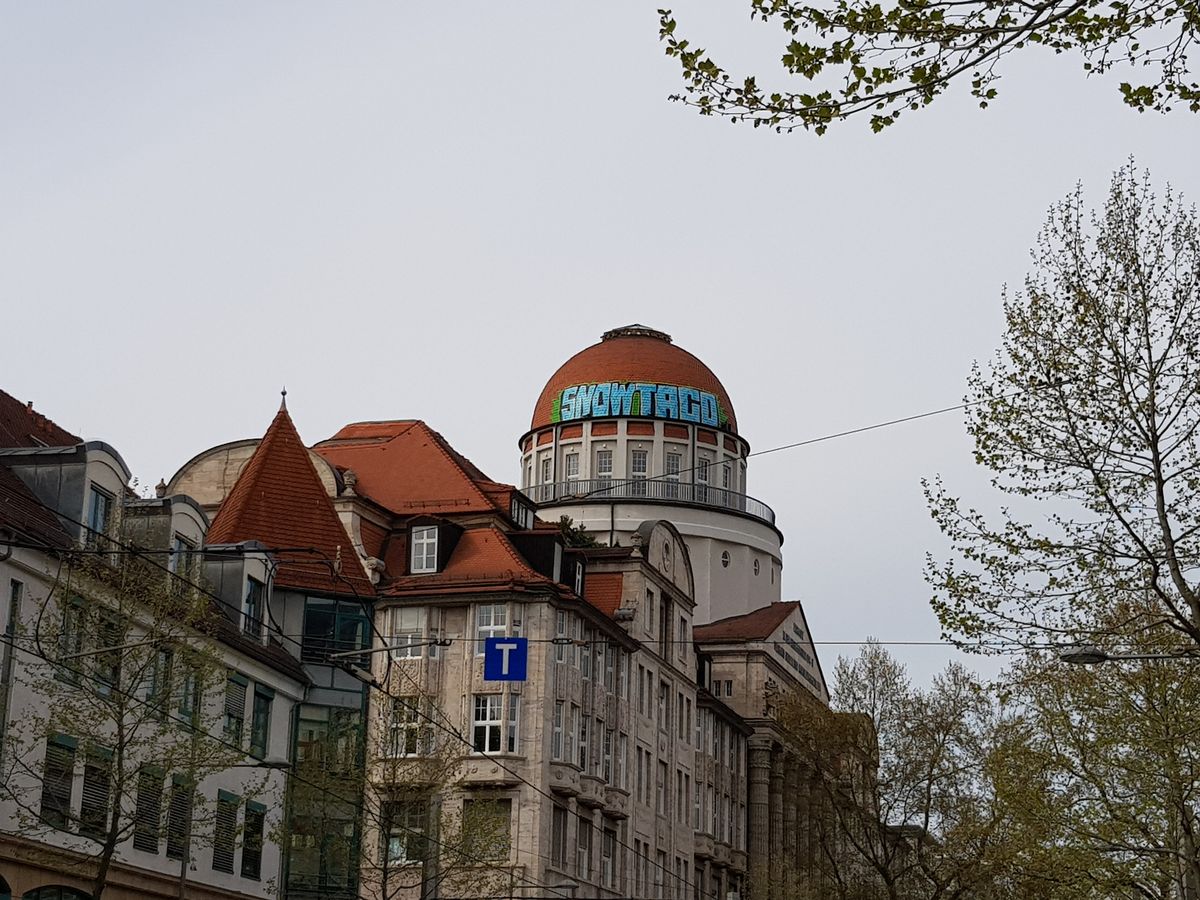 Am Wünschmann-Haus in der Karl-Liebknecht-Straße in Leipzig prangt neuerdings ein meterhohes Graffito. Unbekannte haben den Schriftzug „Snow Taco“ laut Polizei in der Nacht auf Donnerstag an der Kuppelfassade angebracht. Er hat eine geschätzte Größe von 12 mal 3 Metern. Der entstandene Sachschaden beläuft sich auf etwa 50.000 Euro. Die Ermittlungen laufen, wie der oder die Täter das Graffito in dieser Höhe anbringen konnten, ist noch unklar.