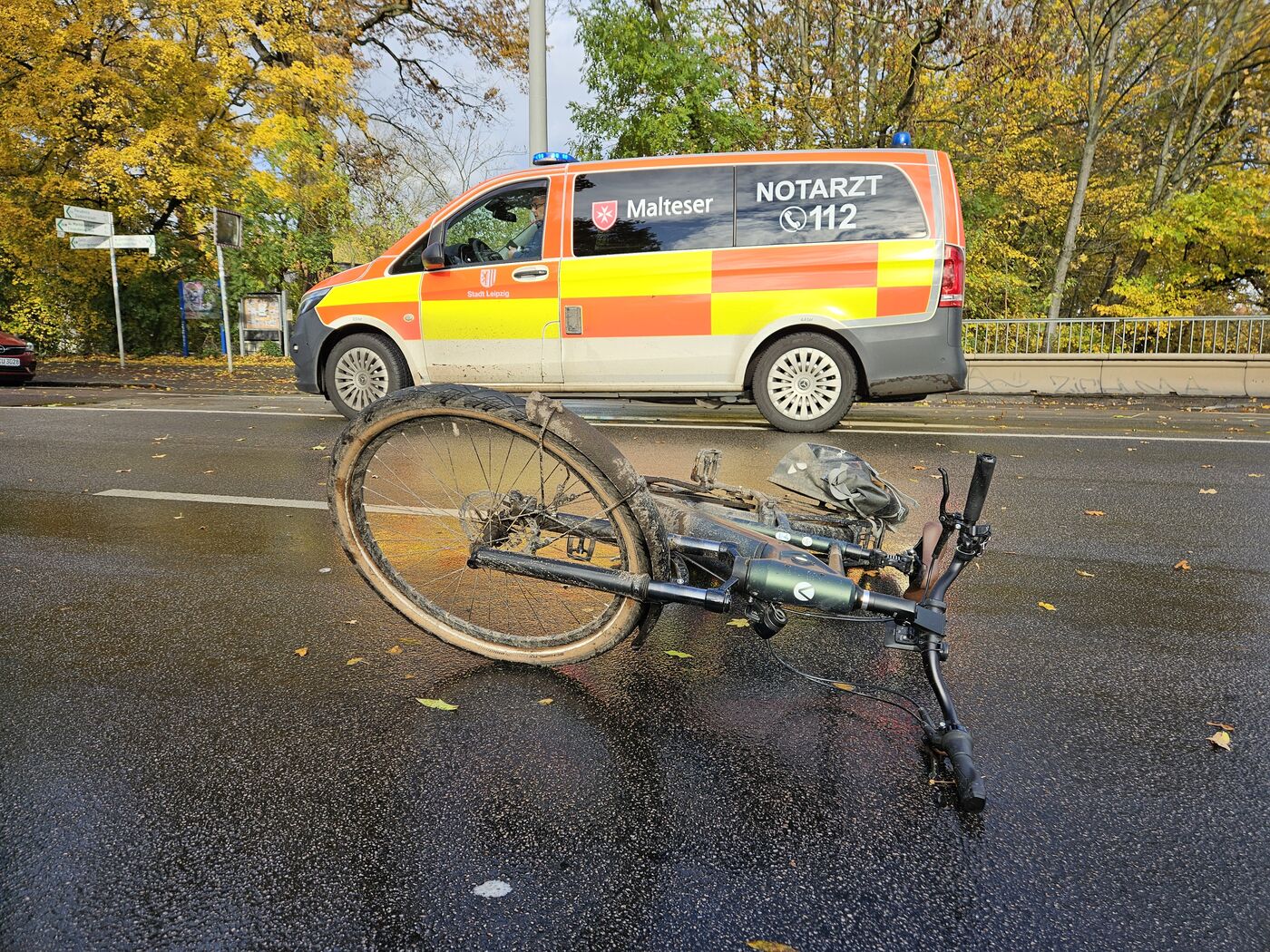Schwerer Unfall auf dem Schleußiger Weg: In Höhe der Brücke über die Pleiße hat ein SUV-Fahrer am Donnerstagvormittag - laut Polizei gegen 9.30 Uhr - einen Radfahrer erfasst. Der wurde gegen die Frontscheibe geschleudert und landete auf dem Asphalt. Rettungskräfte brachten den Schwerverletzten ins Krankenhaus. Zum Unfallhergang sei noch nichts bekannt, hieß es auf Anfrage.