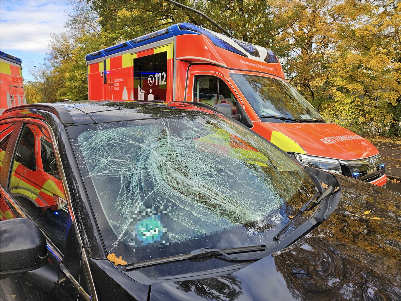 - Die Frontscheibe des SUV wurde bei dem Unfall zerstört.