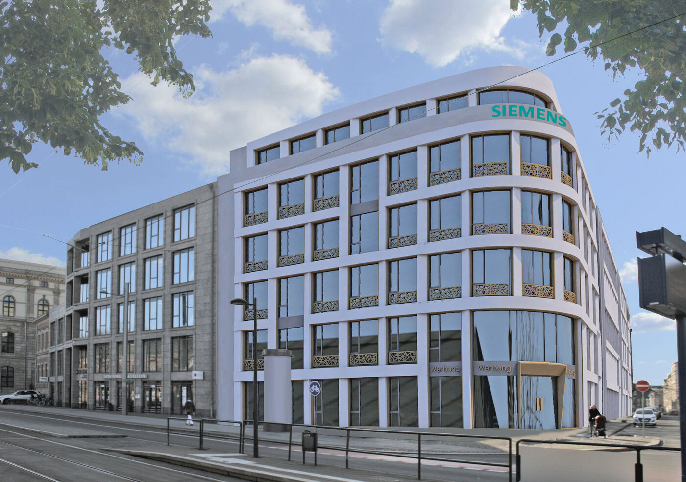 In der Talstraße wurde der erste Spatenstich für die neue Niederlassung der Siemens AG in Leipzig gesetzt. Das Gebäude mit fast 12.000 qm Fläche wird von der Stadtbau AG unter Berücksichtigung der aktuellen Energie-Effizienz-Standards gebaut.