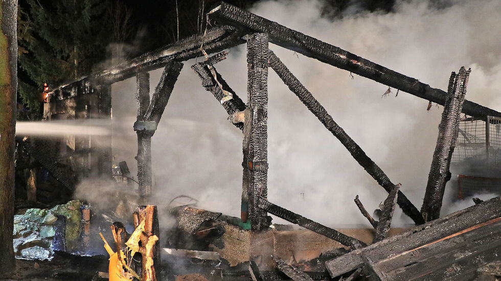 Stallungen & Gebäude: Der Pensionsstall ist komplett abgebrannt. Das erst frisch saniertes, behindertengerechtes Klohaus stand direkt am Brandherd. Ob die Innenausstattung noch brauchbar ist wird sich in ein paar Tagen zeigen.
