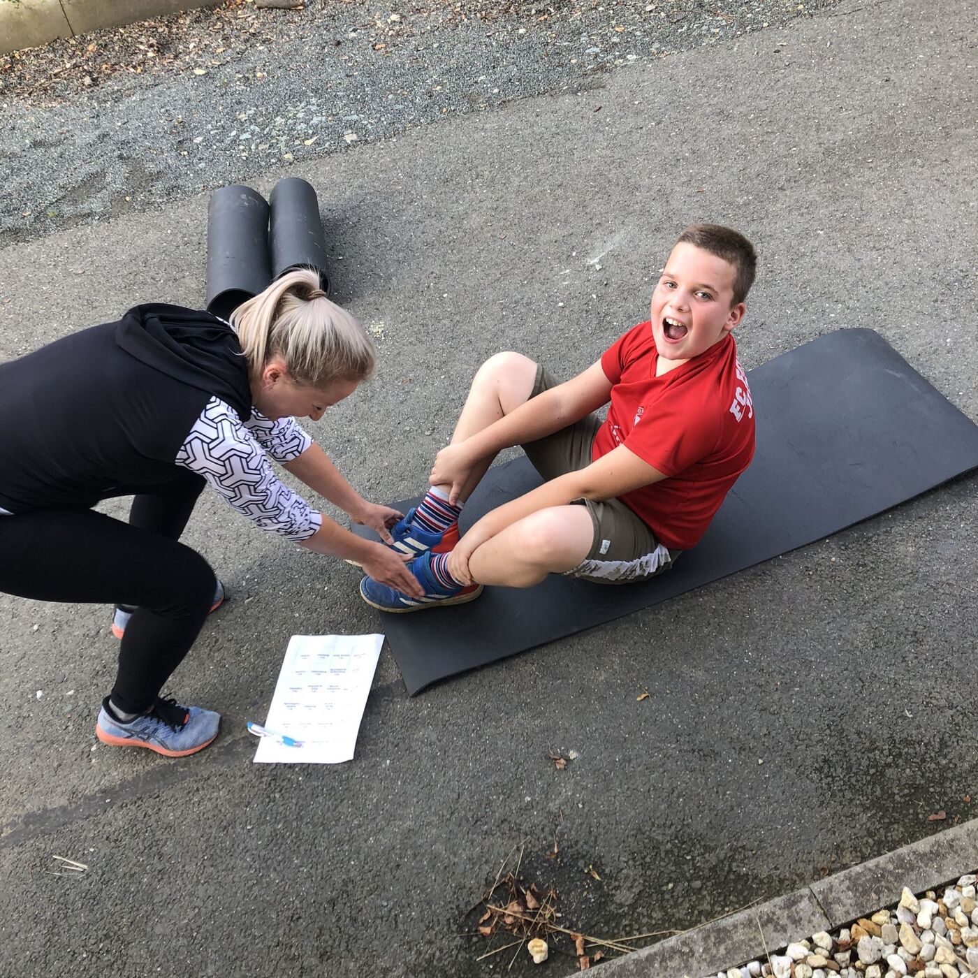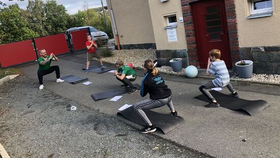 Fitnesstrainerin Cindy Bauerfeind baut auf Grundlage der Entwicklungsstände der Kinder ein individuelles Trainingsprogramm auf. Das Gleichgewicht und die Stabilitätsmuskeln der Kinder werden ausgebessert. Das Sportprogramm ist ein Ventil für mehr Ausgeglichenheit und Entspannung im Alltag.