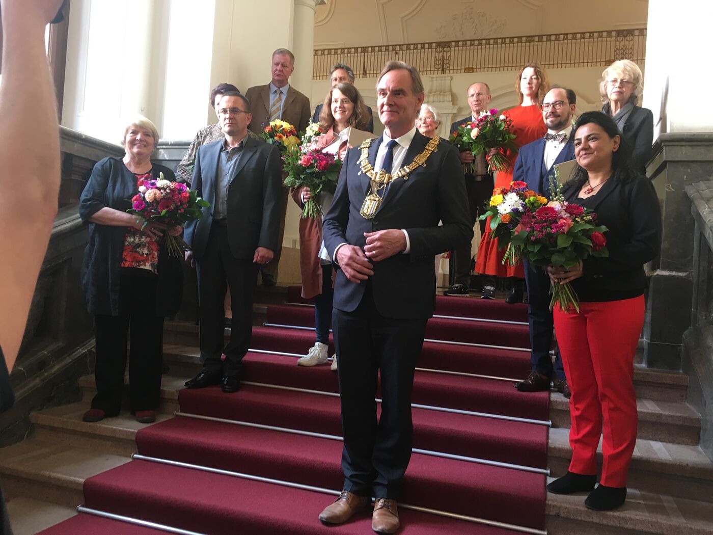- Oberbürgermeister Burkhard Jung mit den ausgezeichneten Ehrenamtlichen