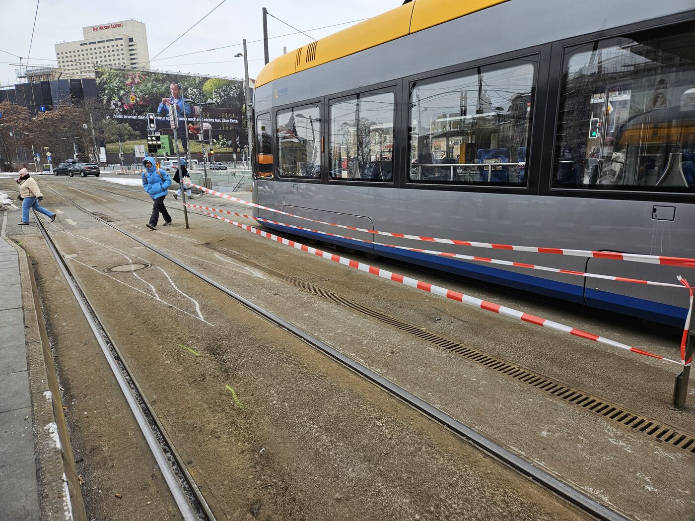 - Stillstand vor dem Leipziger Hauptbahnhof: Am Dienstagmorgen ist dort eine Straßenbahn entgleist.