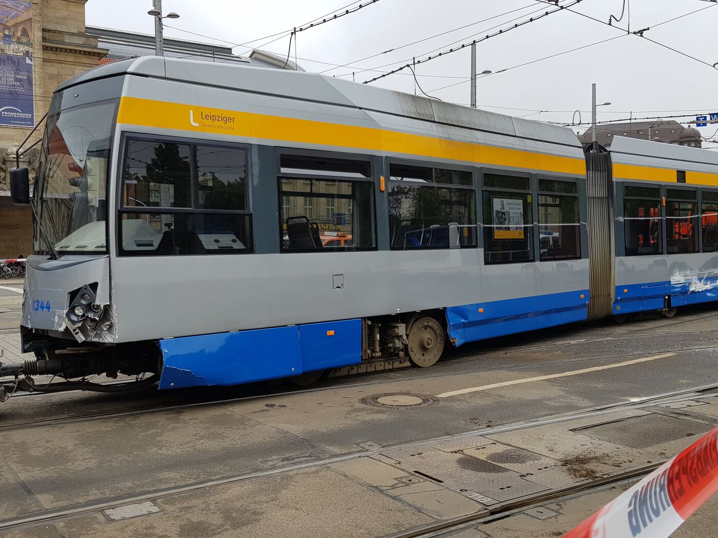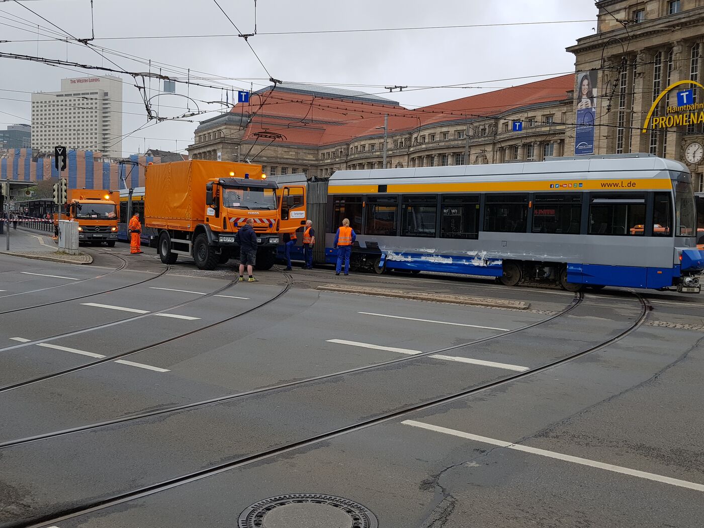Straßenbahn am Leipziger Hauptbahnhof entgleist