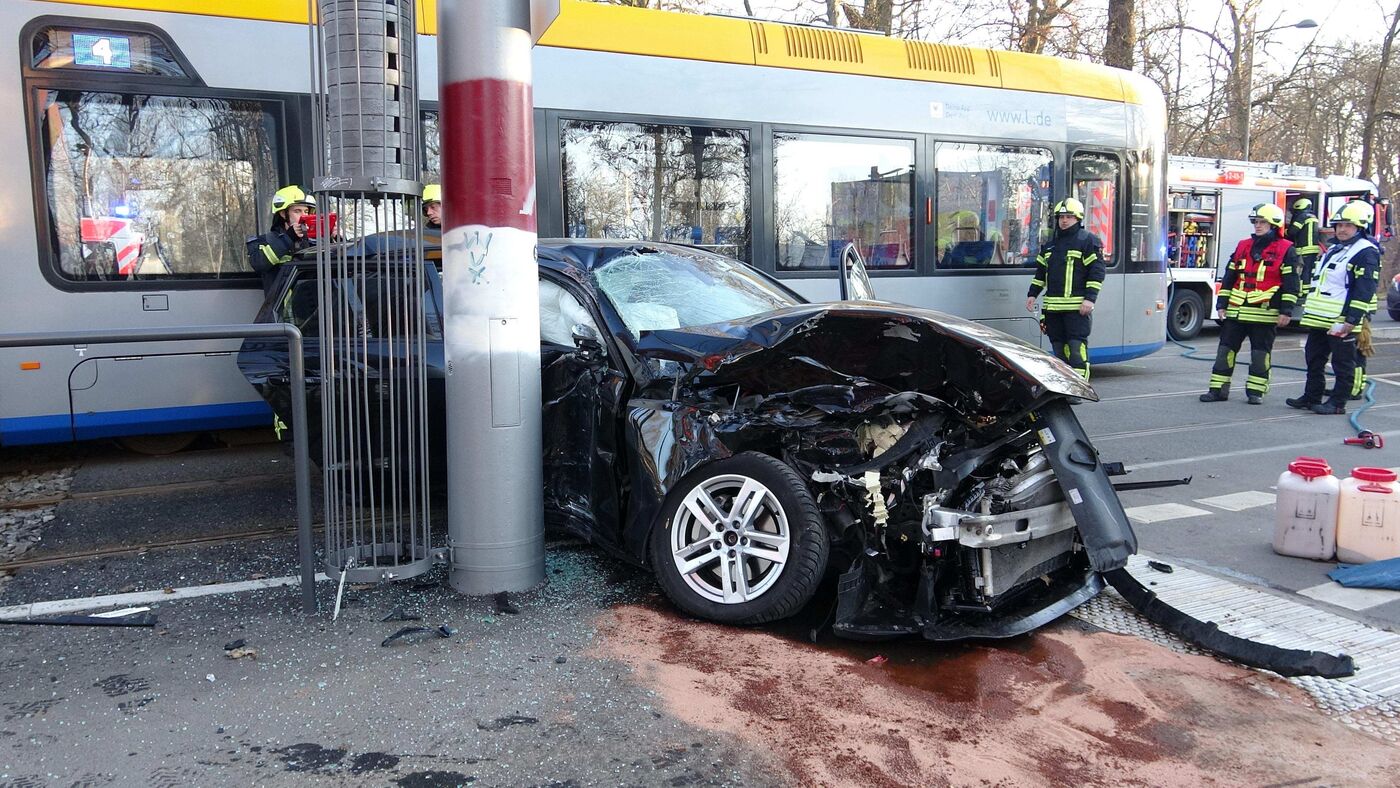 Tram kracht im Leipziger Zentrum in Auto - Fahrerin eingeklemmt