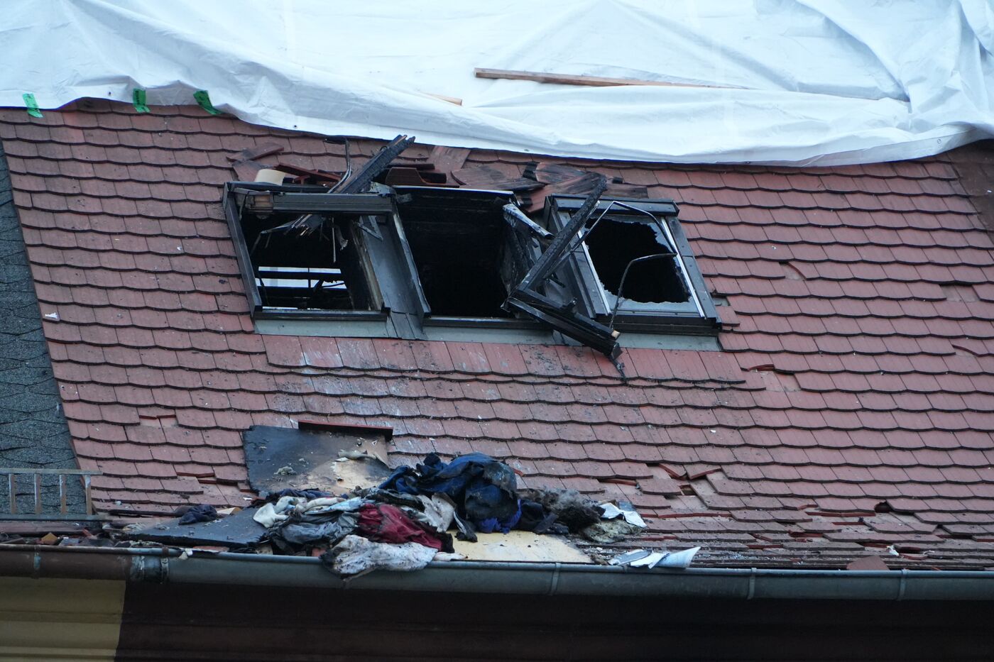 - Bei dem Feuer zerstörte Fenster im Dachgeschoss.