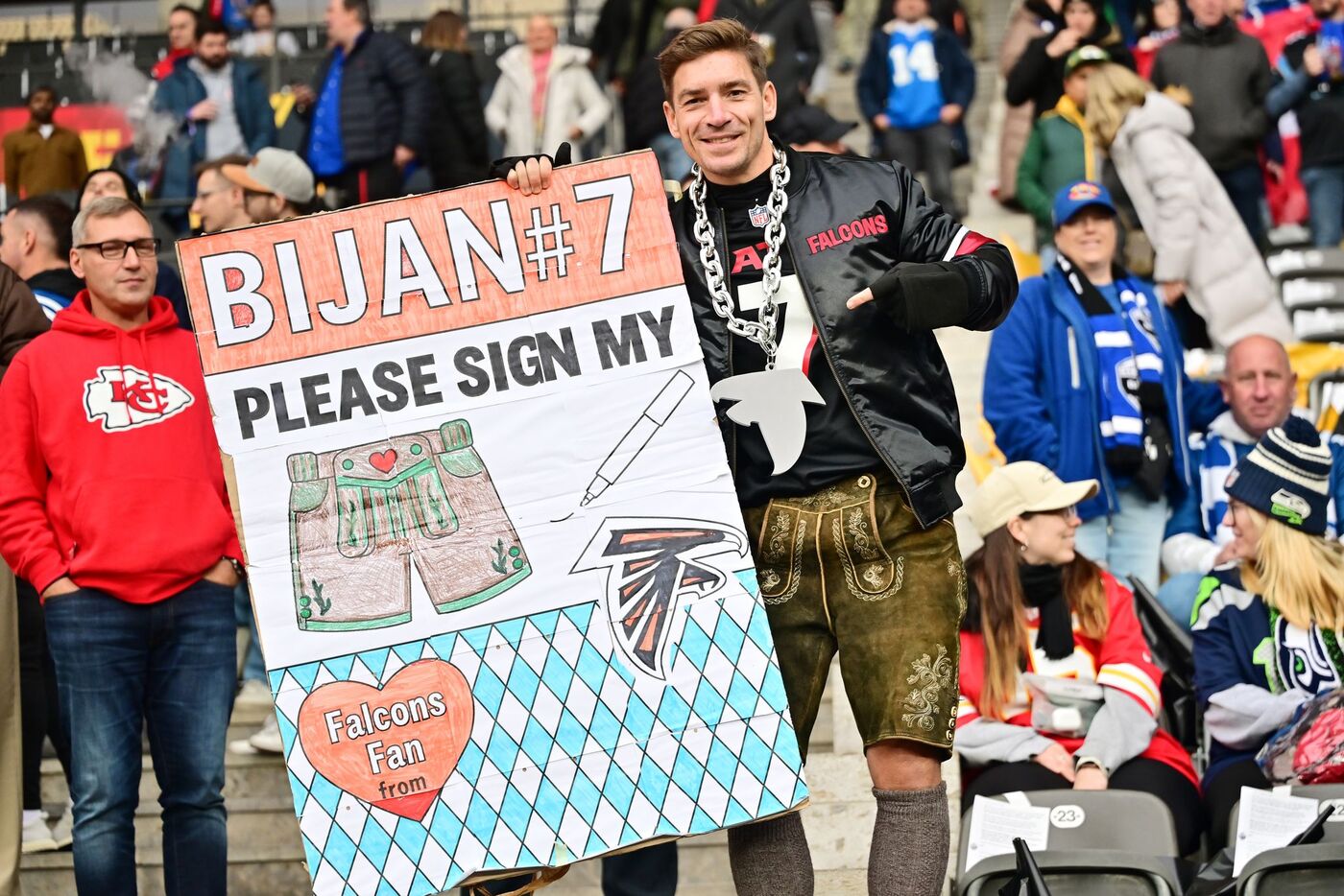 - Ein Falcons-Fan hoffte auf ein Autogramm von Running Back Bijan Robinson.