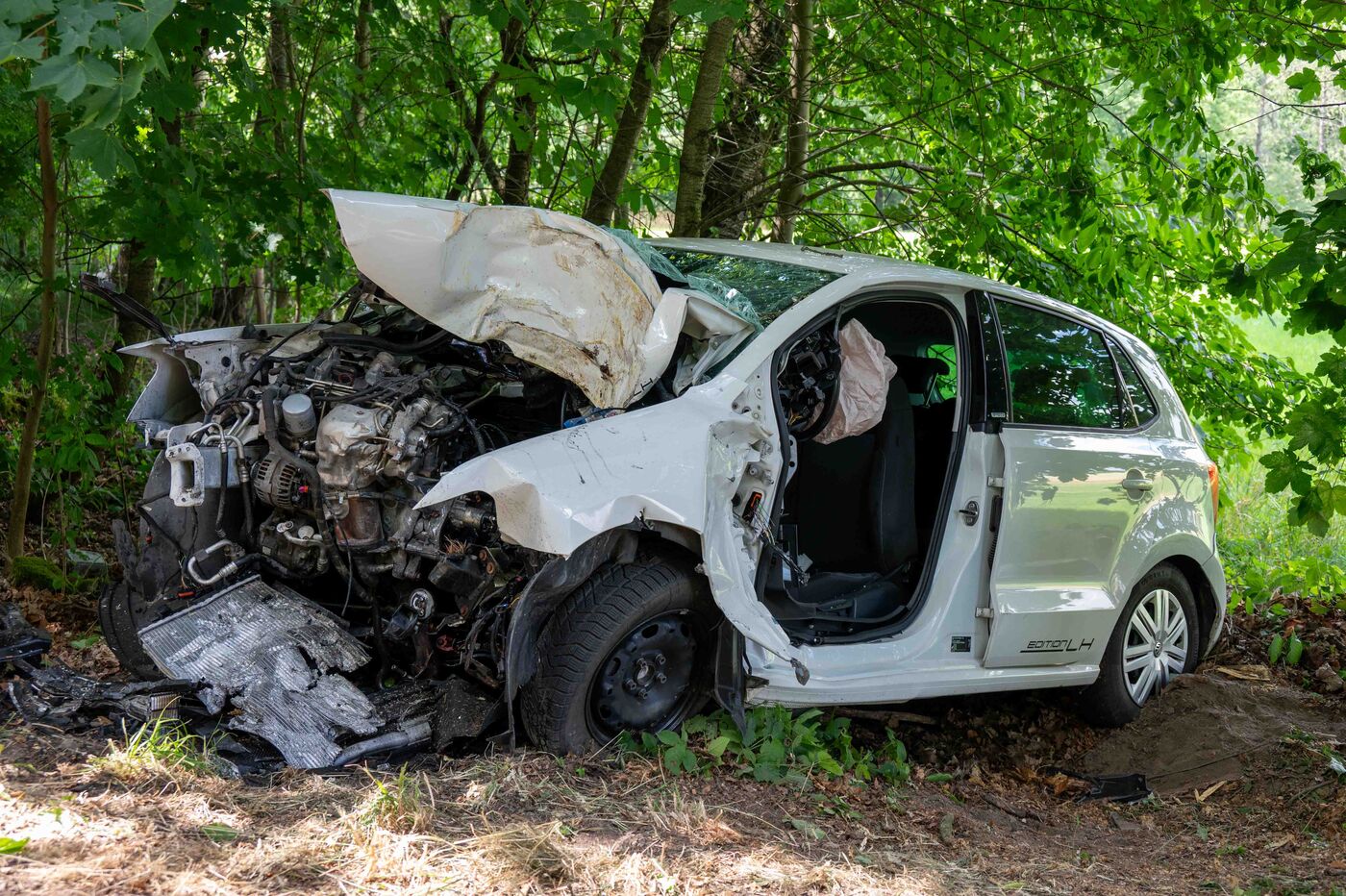 Der VW prallt gegen einen Baum am Fahrbahnrand. Die Wucht des Aufpralls ist so groß, dass der Fahrer noch an der Unfallstelle stirbt. Rettungskräfte können nichts mehr für ihn tun. Er erliegt seinen schweren Verletzungen.