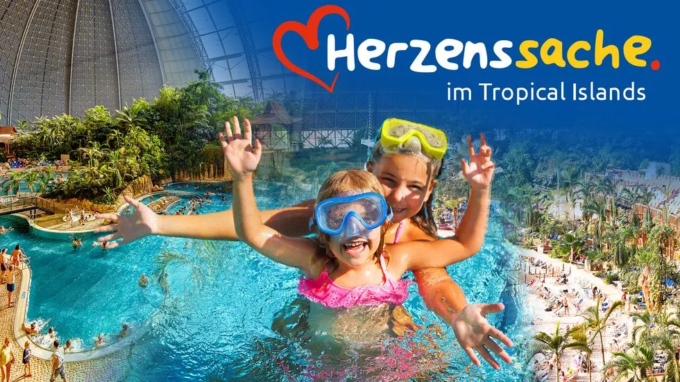 Das Tropical Islands hatte die Kinder eingeladen und das Wetter war wie gemacht, um vom Süden zu träumen. Draußen gab's Sonne pur und drinnen tummelten sich die Kinder bei 28 Grad Wassertemperatur und den perfekten tropischen Bedingungen.