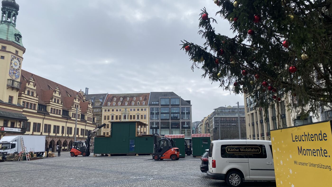 - Der Aufbau der Buden für den Leipziger Weihnachtsmarkt hat am Montag begonnen.