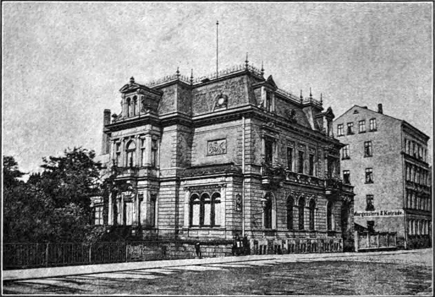 - Ein historisches Bild aus der Erbauungszeit. Der vermögende Leipziger Kaufmann Louis Davignon ließ ab 1880 vom 1964 errichteten Wohnhaus zur prunkvollen Villa umbauen bzw. neu errichten.
