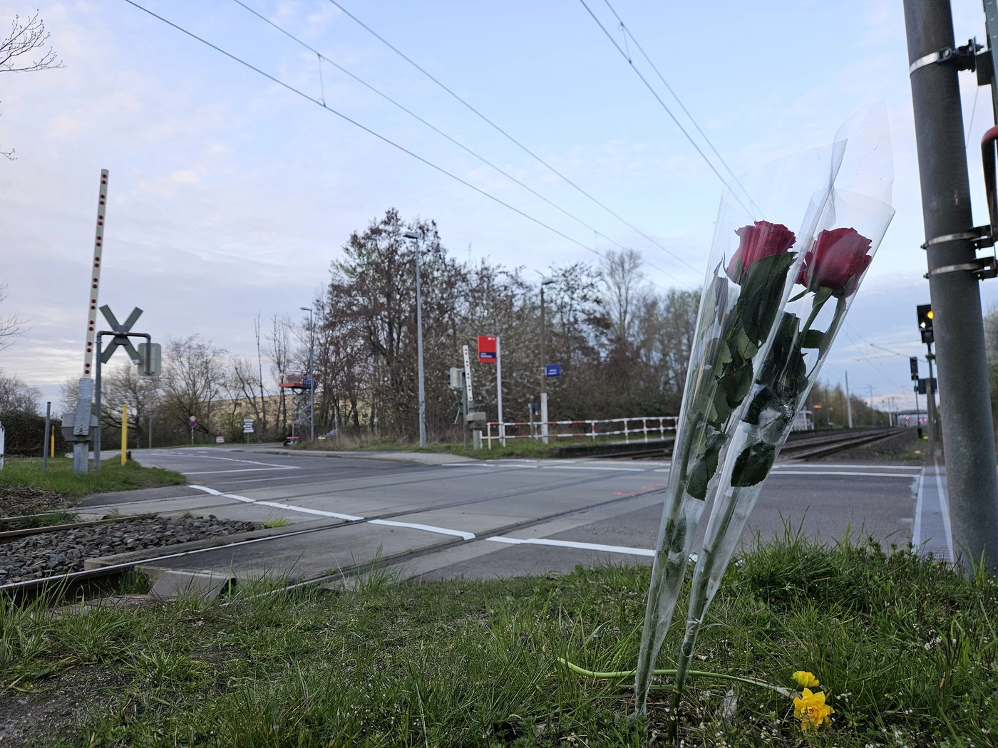 - Blumen an dem Bahnübergang, an dem der tödliche Unfall passierte.